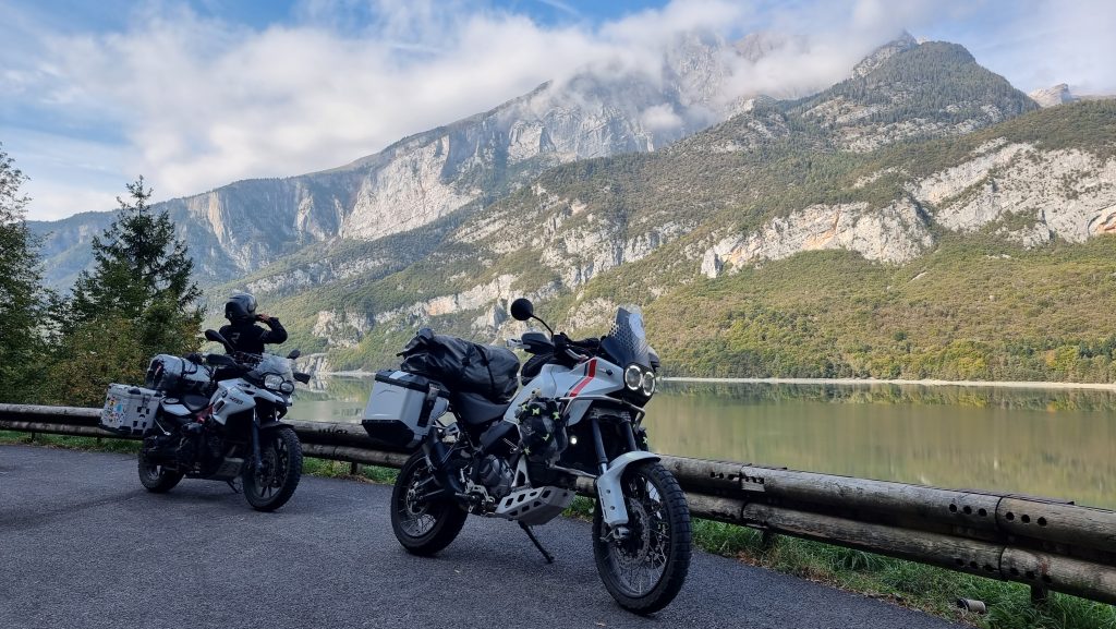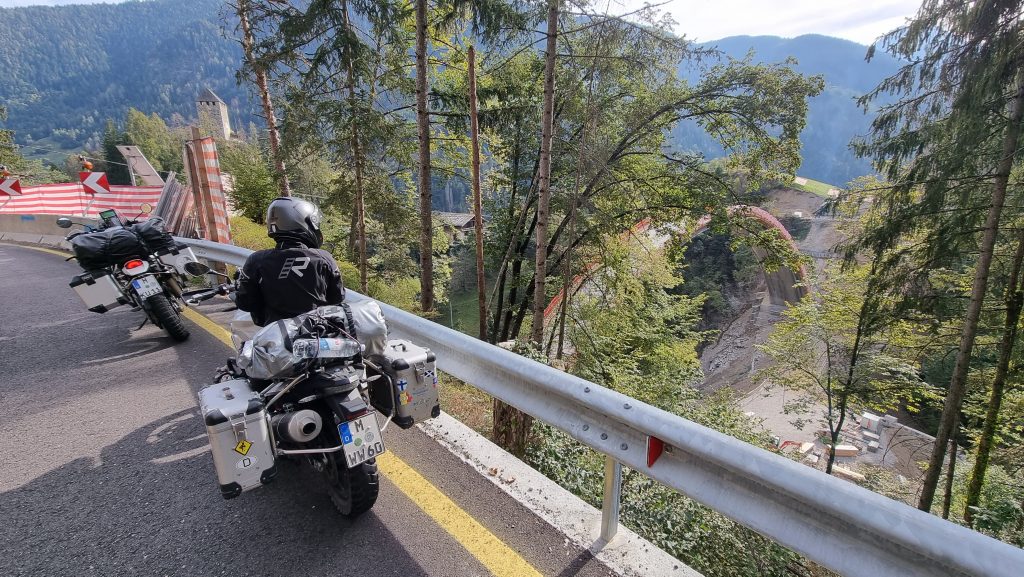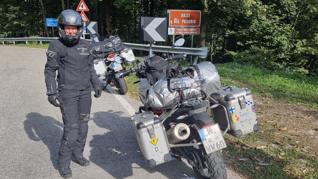 Nachdem alles, inklusive Motor-Update, erledigt war, fuhren wir einer extrem kurvenreichen Strecke entgegen, die sich allerdings so „kleinteilig“ darstellte, dass wir für die 90 Kilometer bis Rovereto dann doch auf eine andere Route über die Valli del Pasubio wechselten. Immer noch „klein“ genug, zumal Streckensperrungen über wieder sehr „kehrenlastige“ Abschnitte umleiteten.