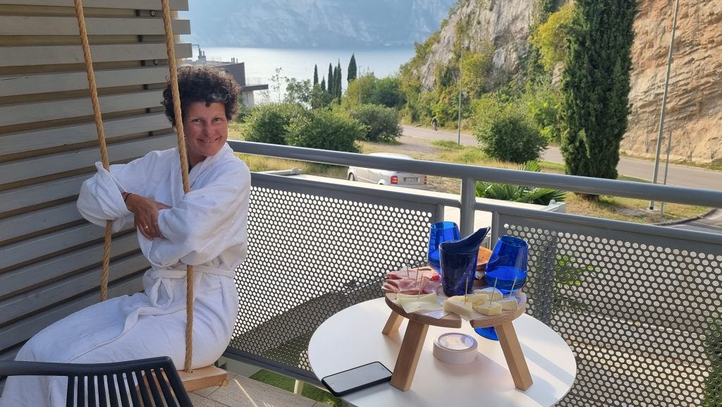 Bei einem Kaffee in Rovereto buchten wir uns die nächste Unterkunft oberhalb von Torbole. Ein sehr nettes Hotel nahm uns mit einem „Brotzeitkorb“ in Empfang, den wir auf dem Balkon mit Blick auf Pferdchen und Lago verspeisten. 🤗😍