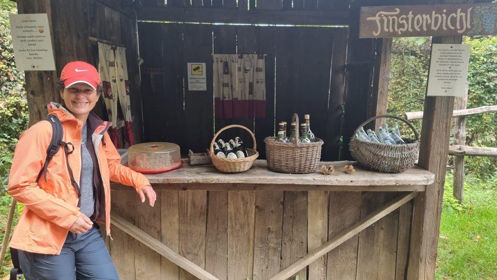 Das Abendessen und Frühstück war standesgemäß spitzenmäßig und um das Hüftgold wieder abzutrainieren, haben wir uns am nächsten Morgen auf eine längere Wanderung gemacht. 15 Kilometer bei 650 Höhenmetern bei wechselhaftem Wetter. Auf dem Weg noch ein Treffen auf eigenwillige Kreaturen mit Kopfschmuck (Puter oder ähnlich) 😂. Danach Sauna und wieder leckeres, in der Halbpension inkludiertes 4-Gänge-Menü! 😂🙈