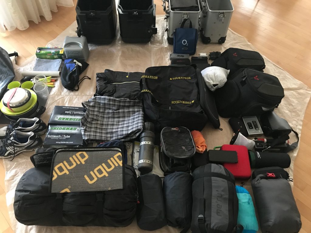 Am Wochenende haben wir das finale Probepacken getestet. „Alles muss rein“ hieß unser Slogan und wir haben unsere Packrollen, Tankrucksäche, Seitentaschen und Seitenkoffer gepackt, geprüft, umgepackt, umgeschichtet, verteilt, Gepäck von einer Seite in die andere verlagert, Gewicht geprüft, Wäschestücke entnommen, Ausrüstung aufgeteilt, und, und, und…
